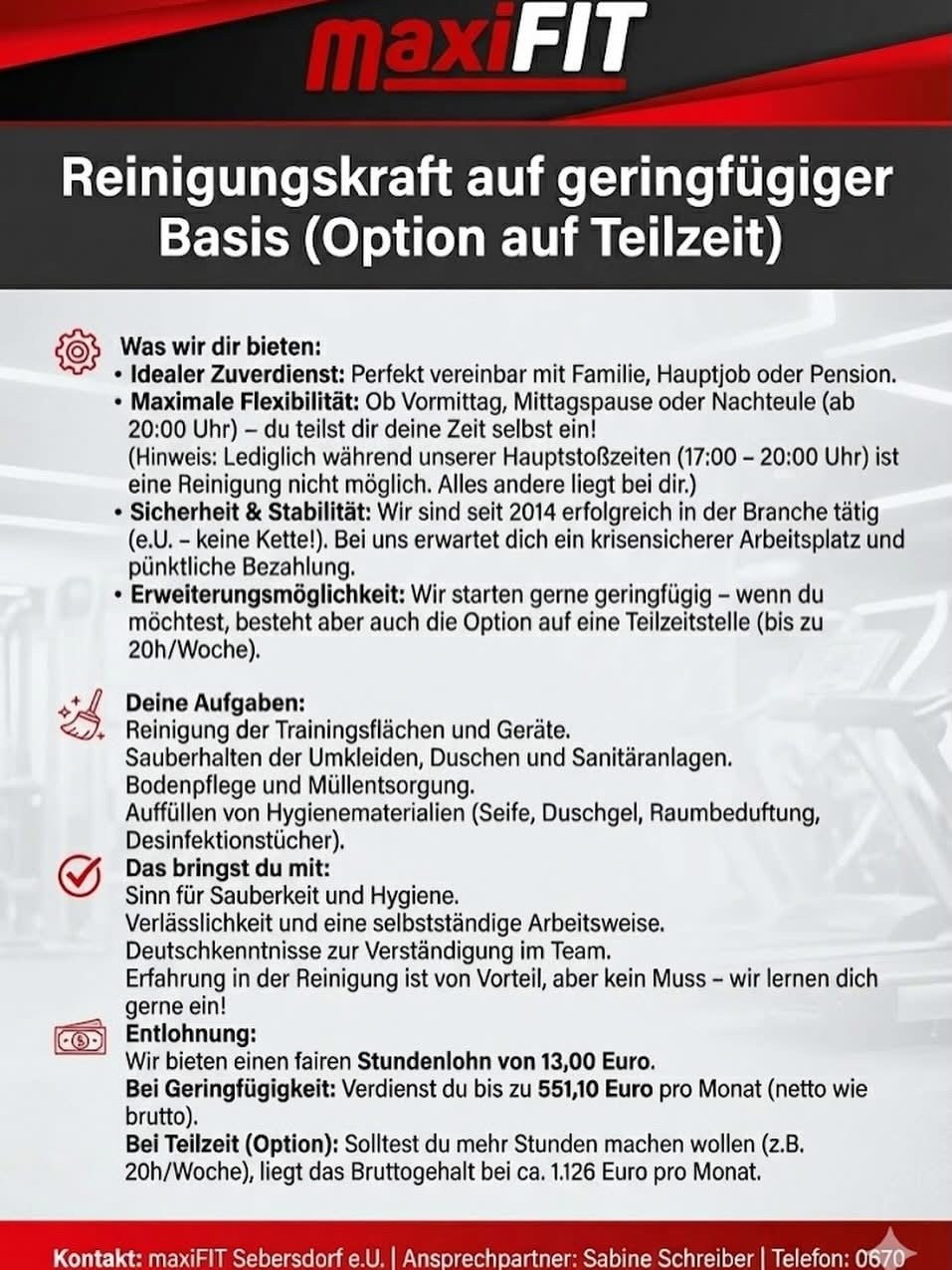 - ReinigungsmitarbeiterIn (Voll- oder Teilzeit)
