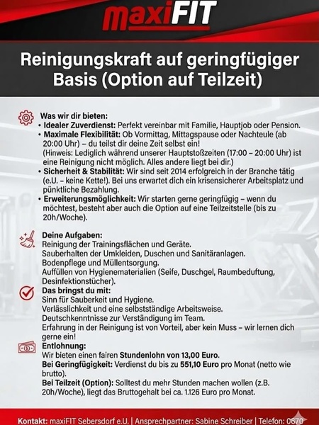 - ReinigungsmitarbeiterIn (Voll- oder Teilzeit)