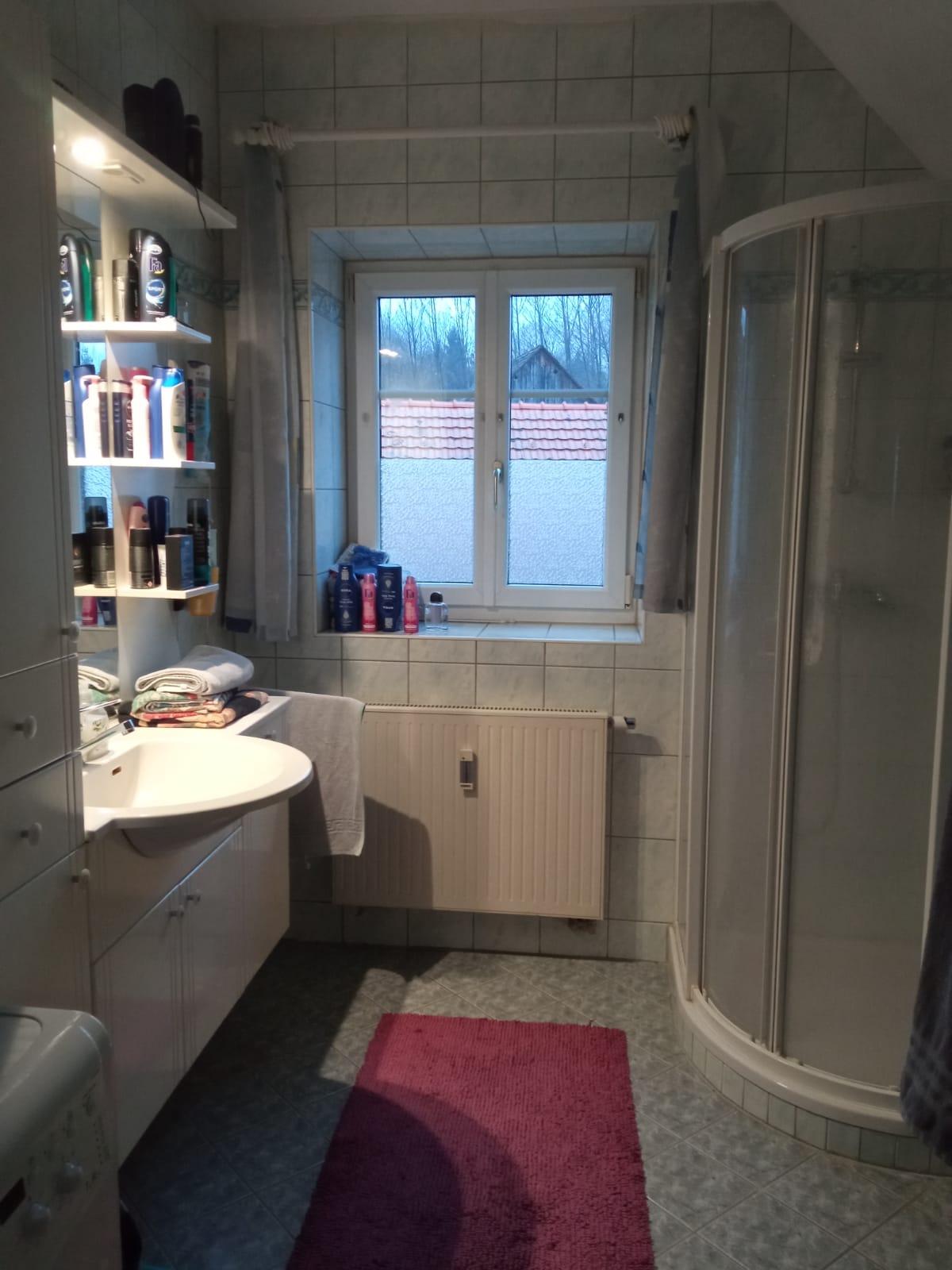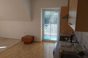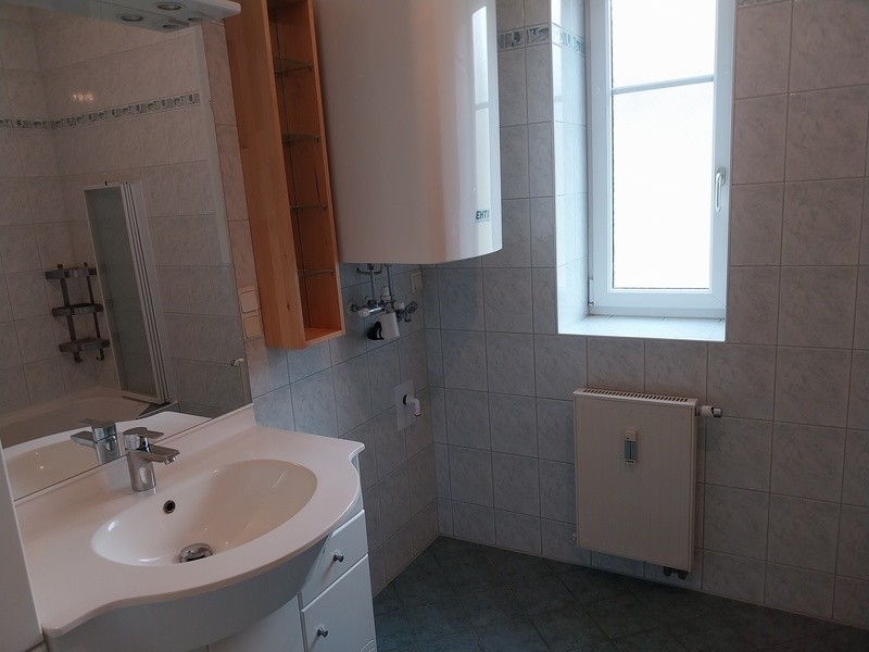 60qm Wohnung mit Balkon und guter Aussicht, 1.Stock, Wohnküche mit kompletter Kücheneinrichtung, Schlafzimmer, Badezimmer mit Dusche, extra WC, Abstellraum; großes Kellerabteil. Autoabstellplatz vorm Haus.