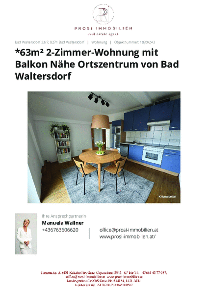 Die Marktgemeinde Bad Waltersdorf vermietet ab Dezember 2025 eine komplett sanierte Wohnung im Obergeschoß des Pötz-Hauses in zentraler Lage.